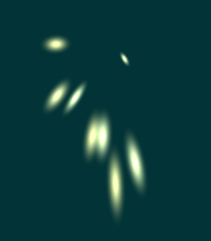 • spread (default: 1.0): determines how strongly the particles deviate from each other. With low values the particles will stay quite close together, high values will make them fly in all directions. Also affects their speed.